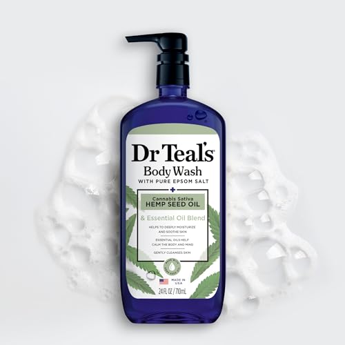 Dr Teal’s Body Wash with Pure Epsom Salt, Cannabis Sativa Hemp Seed Oil, 24 fl oz (Pack of 2) (Packaging May Vary)