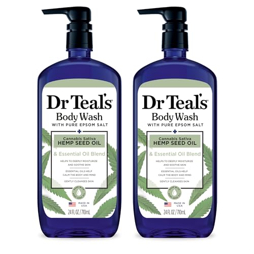 Dr Teal’s Body Wash with Pure Epsom Salt, Cannabis Sativa Hemp Seed Oil, 24 fl oz (Pack of 2) (Packaging May Vary)